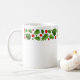 La tasse à café de Noël est présentée ici avec un imprimé festif de la guirlande sainte de Noël. Customisez cet objet ou achetez tel quel. Image stock vecteezy.com