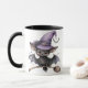 Chat noir excentrique dans un casquette de sorcière à l'aide d'un balai de sorcière. Illustration de style aquarelle. Le nom peut être customisé pour le rendre plus spécial. Parfait pour Halloween et cette saison d'octobre. :)