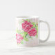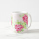 Café Rose design sur une tasse. Des roses douces et roses entourent votre tasse d'un jardin de délice.