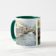 Blanc et vert chasseur 11 oz. mug combiné avec une image, de part et d'autre, de cafés pittoresques le long d'un canal à Venise, Italie. Voir le pot de bonbons assorti, plaque de papier et carreaux de céramique carré. Voir l'ensemble de la collection Italy Mug dans la section HOME.