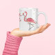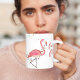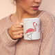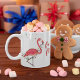 Ce design comprend un Noël de vacances mignon amusant amusant, aquarelle amusant rose joyeux flamant, une série de lumières colorées, un script de calligraphie tendance, avec la citation "fa la la flamingle", un amusant humour personnalisé café, un festin mignon chic féminin, un plaisir de vacances cool unique créatif, une boisson buvée personnalisée, une idée cadeau de Noël