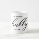 Tasse moderne branchée pour les jeunes mariés. Conception avec "hubby" dans un script manuscrit branché , nom de famille et année établie. Cliquez sur customiser plus loin pour modifier ce modèle. Correspondance de la mug 'wifey' disponible.