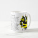 Manteau de famille de Calvert des bras (crête) comprenant l'histoire et la signification du nom de Calvert sur une tasse en céramique de café/thé. Chaque tasse a deux images de votre manteau des bras (un de chaque côté) et l'histoire et la signification du nom de Calvert (au milieu). La tasse en céramique est coffre-fort à micro-ondes et de lave-vaisselle. Vous pouvez maintenant fièrement montrer votre héritage tout en sirotant votre boisson, ou employez-la comme morceau de conversation. Ils font également de grands cadeaux pour les amis et la famille. Cette image peut être employée sur tous les autres produits de tasse et de stein de Zazzle. Pour plus d'information ou avec vos commentaires envoyez l'email à heraldry505@gmail.com