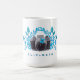 Une tasse avec un design d'aquarelle mignonne pour les bugs à volets. Une caméra noire entourée de feuilles bleu azur et de papillons dans un joli agencement décoratif. Personnalisez avec un nom.