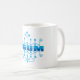 Caneca de Ogum.Ogum, guerreiro e proprietário ou todos os metais. O nome de Ogum e veve símbolo impressiso em cinza. Texto com design do conchas impresso em duas coeurs.