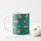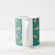 Ce Mugs & Cups présente des illustrations de capybaras flottant dans l'eau. Ces capybara ludiques sont entrecoupés de petites oranges. L'arrière - plan turquoise vient compléter les tons marron, créant une esthétique fantaisiste et légère.