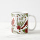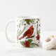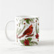 Un cardinal rouge fête sur des baies blanches de mistletoe entourées de verdure de Noël contre un arrière - plan blanc