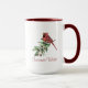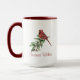 Une belle impression classique de Noël. Le design présente un cardinal rouge aquarelle au centre, assis sur une branche feutrée. Les mots "voeux de Noël" sont en rouge foncé, sous la lettre. Le message peut être customisé.