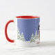 Festive Xmas Rouge Combo Mug - Bernedoodle de Noël personnalisées en combinaison Père Noël et chapeau de Père Noël tenant sucre de canne dans sa bouche. Arrière - plan d'hiver enneigé. Mignonne tasse de noël pour les amateurs de bernedoodle !