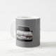 Vue frontale du Carlin d'écoutille chaude 205 GTi des années 1980. Deux illustrations de voiture par tasse de café. Personnalisable, changer les couleurs de voiture. Vous pouvez masquer des images de voitures blanches et noires actives et publier les couleurs que vous voulez à votre tasse. Choisissez également le style de tasse et la couleur arrière - plan comme vous le souhaitez.