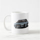 Voiture classique française cool des années 80. Deux illustrations de voiture de Carlin gris-bleu 505 sur une tasse à café. Un cadeau idéal pour les amateurs de Carlins rétro. Style de tasse de Personnaliser et couleur arrière - plan.