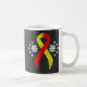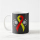 Rubans rouges et jaunes avec fleurs blanches dans un design de tableau noir. Le ruban rouge et jaune est associé à la sensibilisation à l'hépatite C en mai et à la coinfection VIH/VHC en décembre.