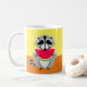 Raton laveur de dessin mangeant de la pastèque de l'art de la faune sur des mugs avec une couleur arrière - plan qui peut être customisé