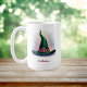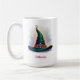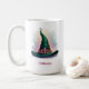 Tasse à café en sorcière à l'effigie du Whimsical, ornée d'un élégant casquette en sorcière verte orné de bijoux rose étincelant et d'une couronne fantaisiste. Parfait pour les amateurs d'imaginaire musical et de fêtes enchantées, ce design ne manquera pas d'impressionner.