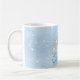 Cette tasse à café sur mesure glamour présente un thème de conte de Cendrillon. L'arrière - plan est un motif en marbre bleu clair glam avec parties scintillant argentée. Une image d'une calèche de princesse de Cendrillon, en forme de citrouille, est photographiée au centre. Les étoiles bleues et les diamants sont dispersés autour du chariot.