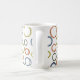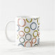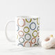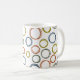Cette tasse a un design Boho de cercles se chevauchant sur des tons rétro de vert, marron, bleu et gris.