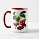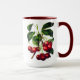 Mug dans un tirage épars de cerises et de feuilles adaptés à partir d'imprimés botaniques vintages - Cerises rouges profondes et feuilles verts sur un arrière - plan blanc