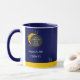 Amusante tasse à café à éclipse solaire unique en son genre qui sert également de certificat d'observateur ou de spectateur. La tasse est divisée en deux parties. La première est la partie externe qui est imprimée avec un cercle noir de la Lune sur le soleil brillant de couleurs jaune et orange. Texte Great American Total Solar Eclipse à l'intérieur du cercle sombre. Textes du 21 août 2017, et je l'ai vu ! sous l'image. Arrière - plan bleu foncé ou marine. Bande jaune au fond de la tasse. Deux silhouettes mâle et femelle gris au coin inférieur droit de cette partie de la tasse. Une femme pointe son doigt sur l'éclipse, un homme essaie de prendre une photo avec son ordinateur portable. Soleil brillant recouvert du cercle sombre sur le côté interne (au propriétaire) de la tasse. Le texte du certificat, le lieu d'utilisation du cachet en caoutchouc de l'éclipse solaire qui est également disponible à la vente et une signature de l'agent de certification. Drôle souvenir tasse à café. Entièrement personnalisable. Vous pouvez tout changer. Utilisez le bouton Personnaliser pour affiner le certificat selon vos souhaits et vos besoins. Amusez-vous, faites-en un et offrez le service. N'oubliez pas d'utiliser le timbre en caoutchouc. Un certificat d'éclipse solaire par carte papier est également disponible.