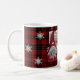Une tasse de vacances amusante et festive avec plaid, burlap, un elfe et le message, "Cette maison est sous surveillance des elfes"