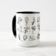 Une tasse avec un design de joabt. L'oeuvre montre des escargots et des champignons disposés en motif.