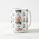 L'image montre un motif élégant et récurrent de fleurs abondantes en oranges chaudes et de petites nuances roses combinées à des feuilles vertes et à des baies rouges. Les papillons flottent doucement entre les fleurs, ce qui donne au design une atmosphère vivante et pacifique. Sur un fond noir profond, les couleurs sont particulièrement présentes, ce qui donne un sentiment de luxe et d'attachement à la nature.