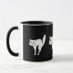 Cette image de Halloween d'un chat drôle avec le sien de retour arqué dans des sembler de surprise et de choc grands sur le fond noir de cette tasse fraîche de thé ou de café de Halloween de qualité, je suis sûr que n'importe qui qui reçoit cette tasse drôle originale de noir de chat pour Halloween sera agréablement étonné.