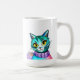 Ajoutez un nom à ce chaton Turquoise, violet, rose et bleu avec des yeux jaunes tasse à café.