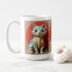 Un chat fait entièrement de papier plié en origami, avec des motifs colorés, assis contre un arrière - plan japonais traditionnel.