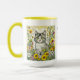 Mug Chat kitty gris et blanc assis en fleurs