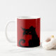 Silhouette d'un chat noir menaçant de bande dessinée avec les yeux rouges.