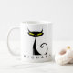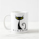 Cette tasse à café en céramique personnalisée présente un chat noir "atomique" moderne rétro du milieu du siècle avec de grands yeux jaunes et une queue bouclée. Vous pouvez facilement modifier l'orthographe du texte, le style de police, la couleur et la taille avec le bouton Personnaliser Zazzle.