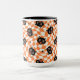 Ce motif d'inspiration vintage présente de charmants visages de chat noir avec de grands yeux larges et des bouches ouvertes, leur donnant une expression de surprise ou d'excitation. Les chats sont dressés contre un arrière - plan rétro, rétro, orange et crème, à l'effet ondulé et déformé, évoquant un sentiment de mouvement ludique. De petites étoiles noires sont disséminées dans le design, ajoutant un élément supplémentaire de fantaisie et de nostalgie. La combinaison des couleurs classiques d'Halloween et des visages de chat stylisés et audacieux crée une esthétique ludique, légèrement éffrayante, qui remonte au design vintage du milieu du siècle.