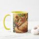 Un design mignon et drôle avec un adorable gros chat orange dormant entouré de tournesols.