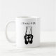 Une tasse avec l'illustration noire d'une danseuse de ballet pantoufles et ses pattes inférieures qui sont transparentes permettant à la couleur de l'arrière - plan de se montrer. Ballerina se tient sur ses orteils, en pointe.