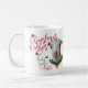 Boug de café de Noël - Portrait adorable d'un LaMancha Doeling avec la verdure de Noël, sainte et baies, un arc rouge et métisse - avec texte de calligraphie orné qui dit : Voeux de Noël et Bébé baisers de chèvre - Remplir avec quelque chose de merveilleux pour un grand cadeau de Noël de Goat Lover! - Parfait pour les amateurs de chèvres en famille - ne seront-ils pas surpris de voir cette chèvre originale de Noël sous leur Noël Arbre matin. A ©goatlady GetYerGoat™ original.