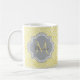 Une tasse motif en arc de cercle Art déco chic avec un badge en quatrefoil gris doux que vous pouvez personnaliser en ajoutant facilement votre propre monogramme et nom. Cette collection fait partie de la collection de printemps du Monogramme de marécage Meadowlark Scallops Harbour Mist.