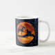 Silhouettes de chien et de chat Greyhound italien sur une branche contre une lune, avec des lumières bleues sur l'arrière - plan noir.