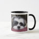 Un chien blanc et noir mignon de Shih Tzu fixant sur un rose/couverture rose. L'image adorable de photographie de race de chien de Shih Tzu imprime.