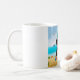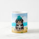 Le chien mignon assis sur la plage est une idée cadeau parfaite pour quelqu'un qui aime cette race de chien.