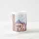 Le pointillisme inspiré de Paris sur cette tasse de porcelaine osseuse a été créé par Kristie Hubler, avec la tour Eiffel, entre planches de bois, dans un style pointillisme