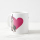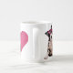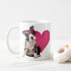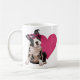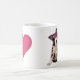 Chiot mignon de terrier de Boston avec des lunettes de soleil et grand coeur rose à l'arrière-plan peint par l'artiste Maryline Cazenave.