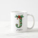Mug Christmas Holly & Bells Letter J Personalized Name