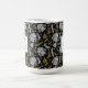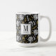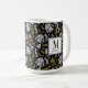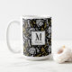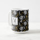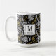 Black and gold monogram mug featuring Christmas sweaters, gloves, socks, scarves, hats and snowflakes. Easily personalize this mug to create a unique custom gift for your family, friends or yourself.