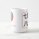 L'énonciation japonaise célèbre de "tombent vers le bas 7 fois - tenez 8" est illustré sur cette belle tasse à côté d'un portrait du Daruma, le moine bouddhiste japonais qui a médité pendant 9 années devant un mur.