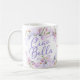 Ciao Bella Lavande Personnalisée Lys Rose Mug. Ciao Bella est italien pour "Hello Beautiful". Cette magnifique nouvelle tasse blanche présente un script de lavande fluide entouré de jolis nénuphars aux tons lavande et rose. La zone centrale de la tasse (entre la droite et la gauche) est personnalisée. C'est un grand cadeau pour le jour de la mère, l'anniversaire ou Pâques !