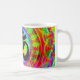 Une fractale kaléidoscopique funky et colorée avec un symbole de om noir. Vous pouvez remplacer le graphique par un gros monogramme moderne ou un texte personnalisé. Créez votre propre tasse de café boho moderne.