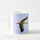 cigogne blanche européenne, cigale, volant dans le ciel bleu et nuageux