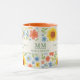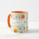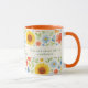 Une tasse décorée d'un motif fleuri avec des tournesols. Texte : Montez et brillez comme un tournesol. Personnalisez et ajoutez vos initiales et votre nom de monogramme.