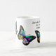 Caterpillar, cocon et papillon. La beauté et l'émerveillement de la transition. Le papillon cite la tasse de café - inspirant et encourageant.