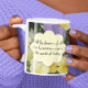 Jolie Pansies Jaunes Motivation Citation Coffee Mug présente de belles pansies jaunes et violettes comme un arrière - plan plus la citation motivationnelle : "Toutes les fleurs de tous les futurs sont dans les graines d'aujourd'hui." Cette jolie tasse présente de belles fleurs aux panneaux jaunes, pourpres et pourpres, avec des feuilles verts qui culminent ici et là pour l'arrière - plan, avec la citation des deux côtés de la tasse : D'un côté c'est sur un contour de fleur jaune, et de l'autre la citation est dans le contour d'une fleur de lavande. Joli et encourageant aussi. Vous pouvez personnaliser cette tasse inspirante en changeant ou en ajoutant des images ainsi que votre propre texte si vous le souhaitez, ou laissez-le tel que conçu. Pour la coordination et la mise en correspondance des accessoires et de la décoration, veuillez visiter notre magasin à zazzle.com/DIYDecor .